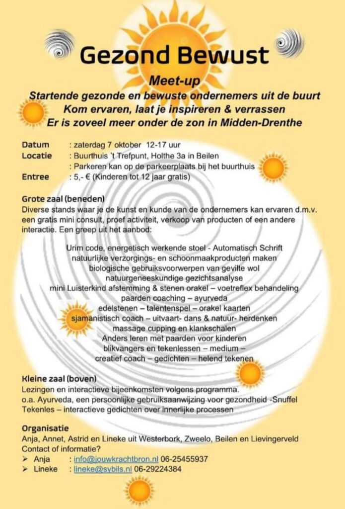 Op 7 oktober sta ik op de Meet-up Gezond Bewust in Beilen.